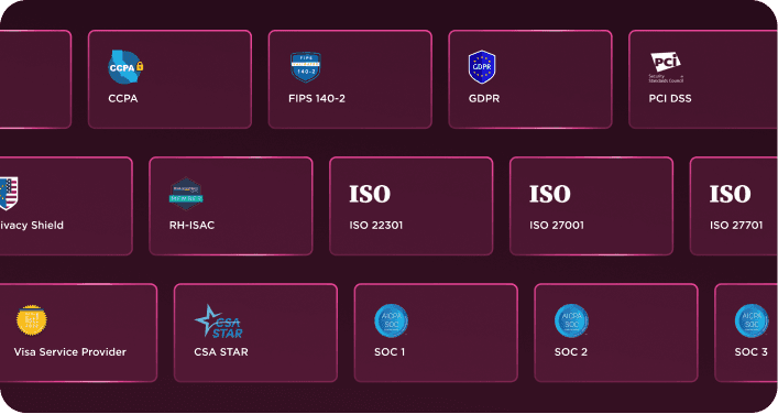 Offriamo alle grandi aziende di tutto il mondo le garanzie di sicurezza e conformità necessarie grazie a un elenco in costante crescita di certificazioni di primo livello, quali ISO, SOC, PCI, FIPS, RH-ISAC, GDPR, e CCPA.